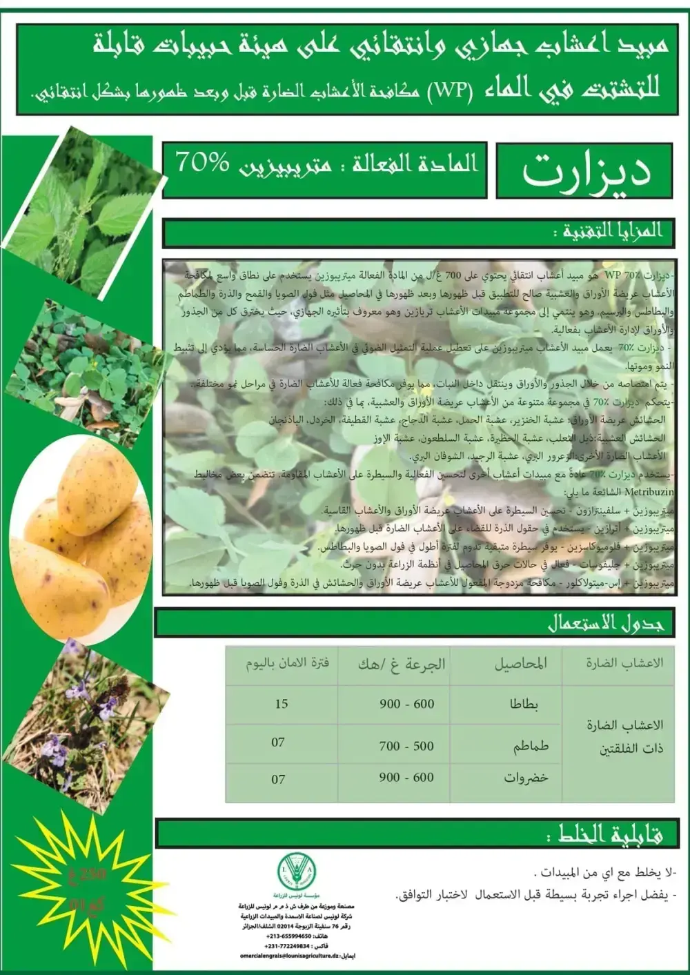 | بطاطا | الاعشاب الضارة ذات الفلقتين | 900 - 600 غ /هك | 15 |