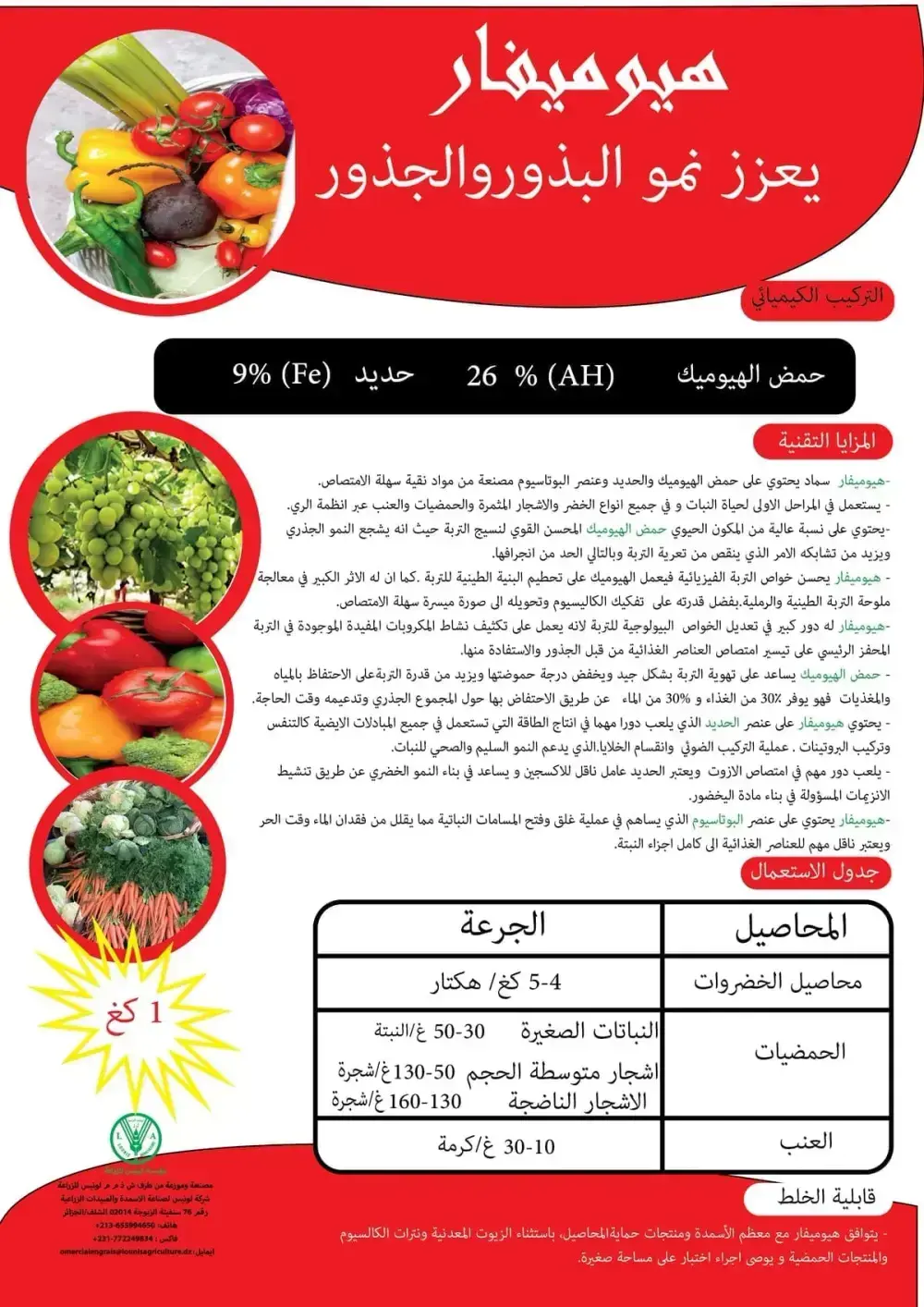 هيوميفار سماد مخلب يحتوي على حمض الهيوميك والحديد والبوتاسيوم يعزز بشكل قوي نمو المجموع الجذري ويحسن بنية التربة.