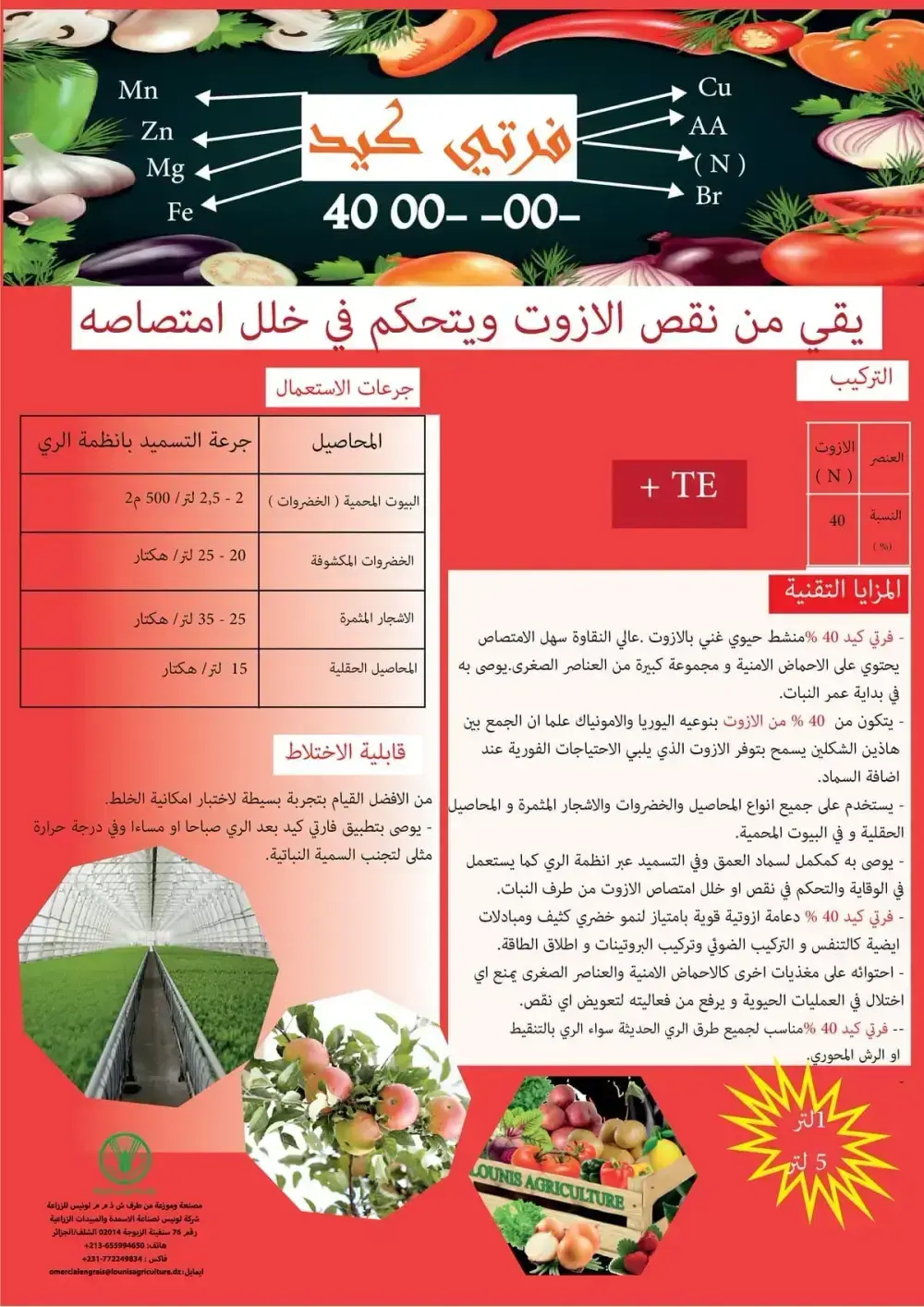 مجموعة فرتي كيد هي سلسلة متكاملة من الأسمدة السائلة عالية النقاوة مصممة لتلبية احتياجات المحاصيل في مختلف مراحل النمو من التجذير والنمو الخضري إلى التزهير والنضج.